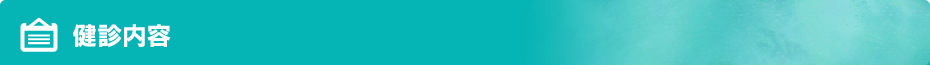 | 血液検査 | 肝機能 GOT・GPT・γーGTP 血中脂質 中性脂肪・HDL-c・LDL-c 糖代謝 空腹時血糖又はHbA1c 腎機能 血清クレアチニン・血清尿酸 貧血検査 赤血球・血色素量・ヘマトクリット値 |